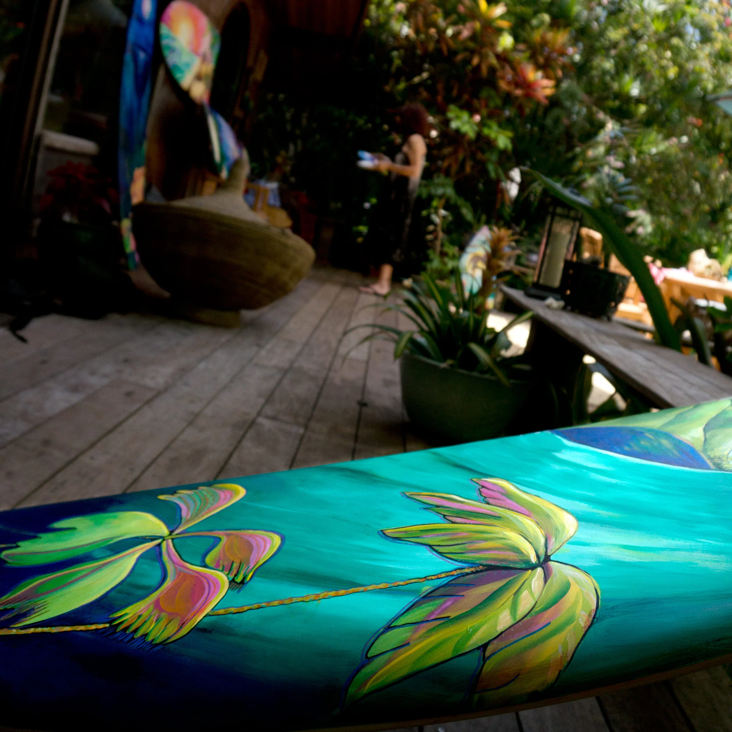 An original Honey Girl Hanalei starts at just $400 for many canvases. Surf art boards are custom and begin at $900.